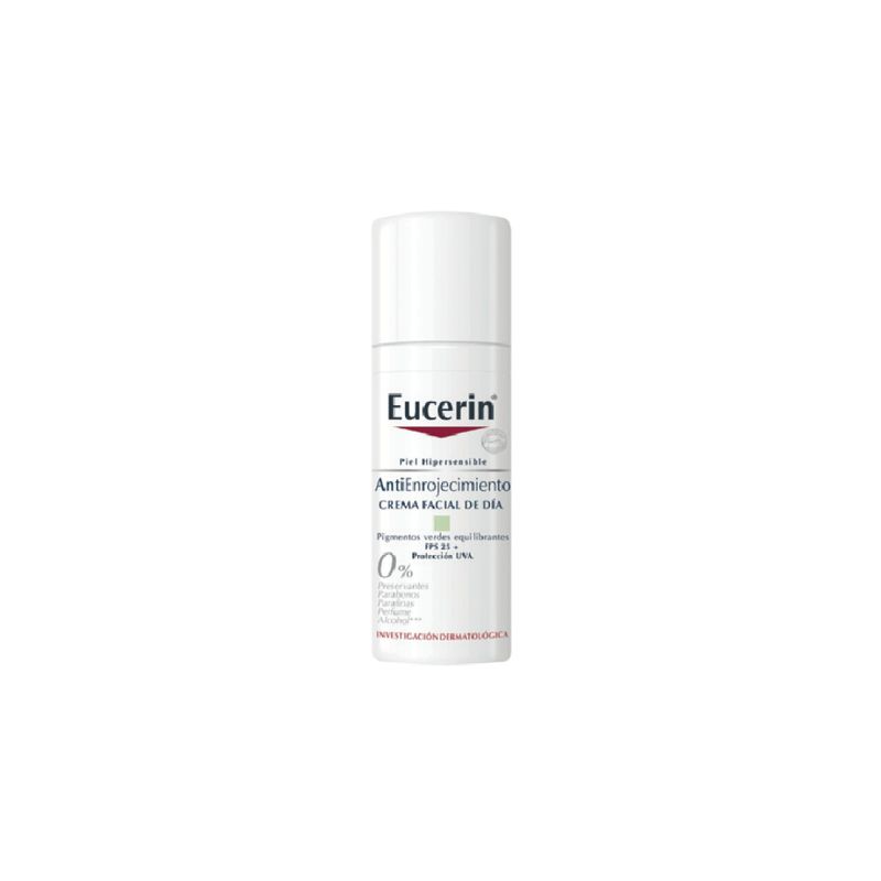 La Crema de día antienrojecimiento Eucerin ha sido especialmente desarrollada para la piel hipersensible y propensa a la Rosácea/Cuperosis. Para mayor protección durante el día, esta crema ofrece FPS 25 y protección UVA. Su fórmula innovadora combina dos ingredientes activos: SymSitive y Licochalcona, que actúan de manera efectiva como reguladores de sensibilidad, calmando la piel y aumentando su tolerancia. También contiene pigmentos verdes equilibrantes que ayudan a unificar el tono de la piel contrarrestando instantáneamente la aparición del enrojecimiento. Para minimizar la posible intolerancia o las reacciones alérgicas la fórmula es ""pura"". Además, su envase posee un sistema de doble válvula para protegerla de la contaminación. Somos una de las empresas líderes en el cuidado de la piel a nivel internacional y, como tales, estamos cerca de nuestros consumidores para ofrecerles productos atractivos e innovadores. En Eucerin® nos dedicamos a la ciencia del cuidado dermatológico de la piel en grado farmacéutico durante más de 100 años. Estamos constantemente en búsqueda de avances científicos, y nos comprometemos a desarrollar soluciones efectivas, altamente tolerables y clínicamente probadas. Desarrollamos nuestros productos para mantener y mejorar la salud y la belleza de tu piel. Porque sabemos que sólo los resultados tangibles y visibles pueden resolver los problemas de tu piel y ayudar a mejorar tu bienestar diario. Sabemos que los efectos de nuestras soluciones para la piel van más allá de la piel, nuestra piel es mucho más que el escudo protector de nuestro cuerpo.