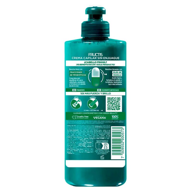 La Crema Para Peinar Garnier Fructis Probióticos 10 en 1 300 ml es el aliado perfecto para cuidar tu cabello frágil y propenso a daños. Enriquecida con aceite de marula y fracciones de probióticos, esta fórmula única proporciona 10 beneficios en un solo producto, fortaleciendo, aportando brillo, hidratando, revitalizando y desenredando tu cabello.