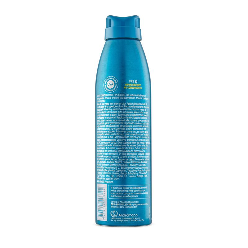 Aplicar abundantemente en el rostro y en el cuerpo 30 minutos antes de la exposición al sol. Rociar preferentemente en un lugar resguardado del viento y esparcir con la mano de manera uniforme. No vaporizar directamente sobre la cara, ojos o mucosas; aplicarlo en la mano y luego distribuirlo en el rostro. Reaplicar cada 2 horas y después de sudoración intensa, nadar o bañarse, o secarse con una toalla. Uso externo.