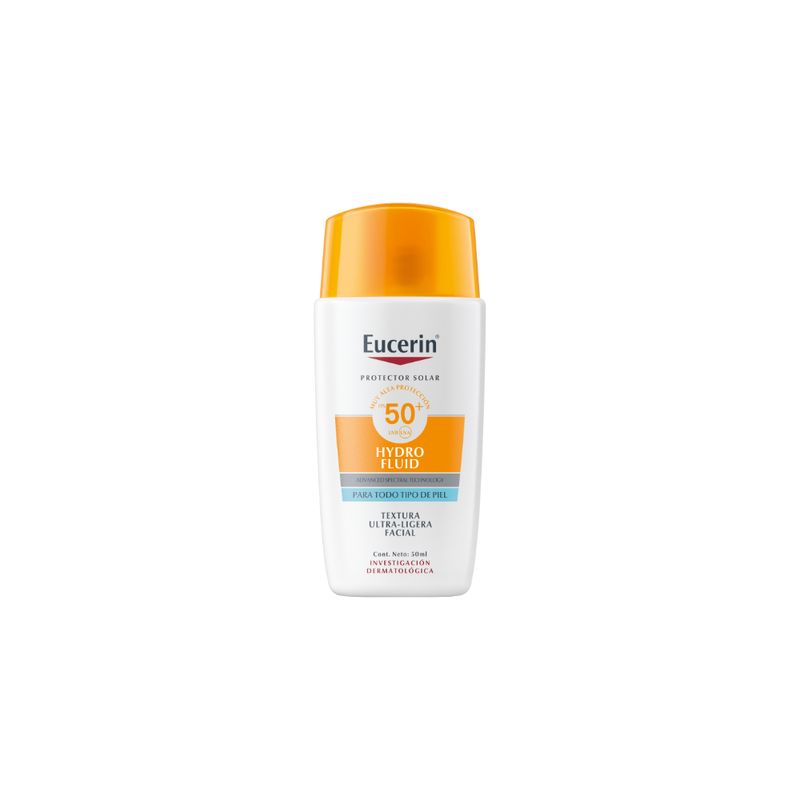 El Protector solar facial Eucerin Hydro Fluid con color es un fluido de textura ultraligera y de rápida absorción que humecta la piel. Su fórmula combina tres ingredientes: Ácido Hialurónico, brinda una hidratación inmediata y deja una sensación fresca en la piel; Licochalcona A, protege la piel de los rayos UVA; y Ácido Glicirretínico, reconocido por su acción antioxidante y de reparación de la piel. No deja una sensación pegajosa ni grasosa y es apto para todo tipo de piel. Somos una de las empresas líderes en el cuidado de la piel a nivel internacional y, como tales, estamos cerca de nuestros consumidores para ofrecerles productos atractivos e innovadores. En Eucerin® nos dedicamos a la ciencia del cuidado dermatológico de la piel en grado farmacéutico durante más de 100 años. Estamos constantemente en búsqueda de avances científicos, y nos comprometemos a desarrollar soluciones efectivas, altamente tolerables y clínicamente probadas. Desarrollamos nuestros productos para mantener y mejorar la salud y la belleza de tu piel. Porque sabemos que sólo los resultados tangibles y visibles pueden resolver los problemas de tu piel y ayudar a mejorar tu bienestar diario. Sabemos que los efectos de nuestras soluciones para la piel van más allá de la piel, nuestra piel es mucho más que el escudo protector de nuestro cuerpo.